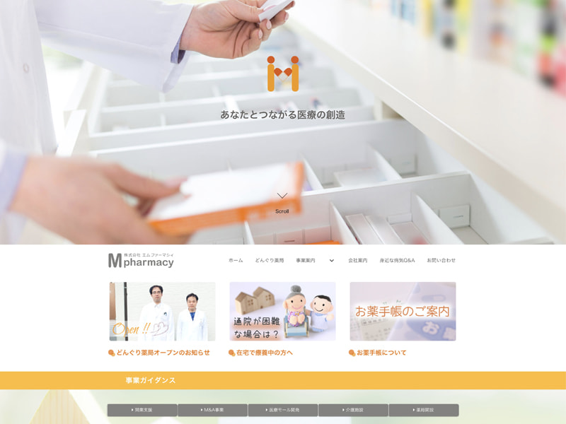 医療事業を行われているエムファーマシィさまのオフィシャルサイトを制作いたしました。