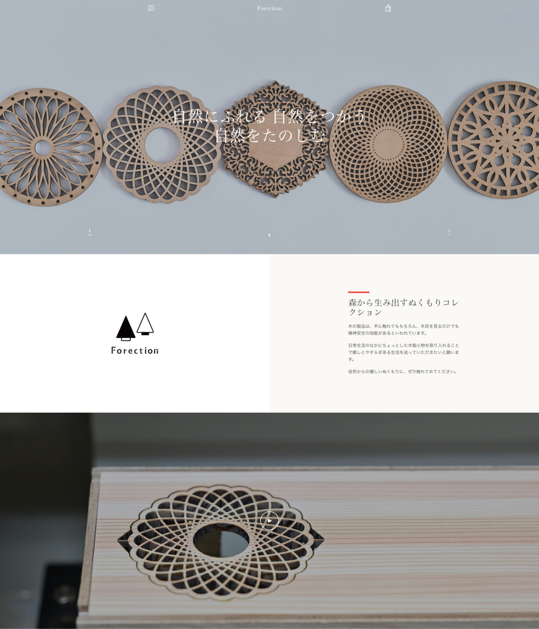 強みとしている、豊富な設備機器を用いた動画も折り込み、木からレーザーカッターを用いた美しい曲線をご覧いただくことができます。