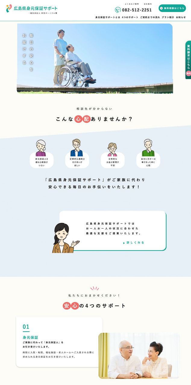 サービスを4つに区分しレイアウトすることで、具体的に受けることが可能なサポートを明確に知っていただくことが可能です。
